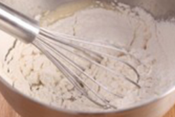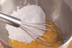 2 筛入低粉和泡打粉的混合物继续拌匀