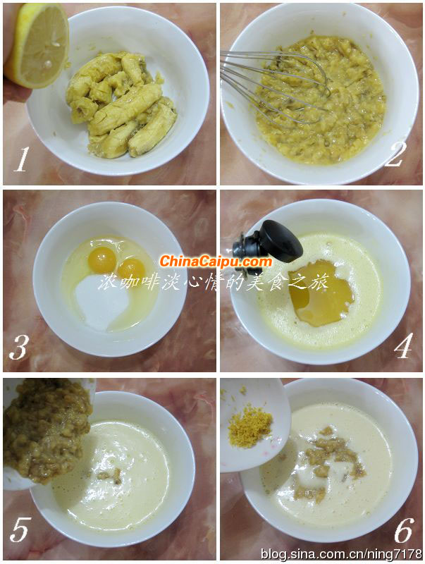1.香蕉去皮放入大碗中挤入柠檬汁。