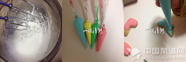 糖霜材料:蛋白1个,糖粉130克,食用色素若干。