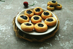 小小个的饼干中间加了一圈果酱,可爱诱人,又酥脆可口中间的果酱香甜无比。不管是成人还是小孩都特别喜欢呢!尤其是小孩子~今天拿出这盘香喷喷的饼干,妹妹就开心的吃的停不下来了。家里有小孩的也快去厨房里试一试吧!