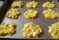 5 舀1汤匙曲奇面糊于烤盘上,每隔4厘米,再放1汤匙面糊