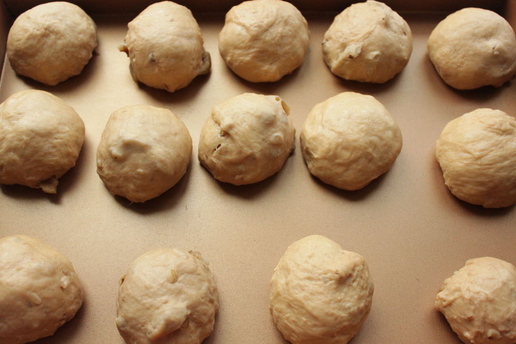 4 基础发酵结,将面团分割成70克/个,滚圆后松弛15分钟