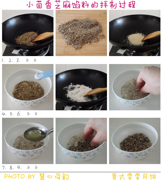 【耍耍月饼馅料原材料】:小茴香15克、白芝麻15克、食盐1/4茶匙、面粉20克、食用油10克。