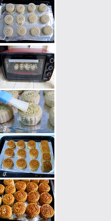8 将所有的月饼做好,码入放了锡纸的烤盘上,喷上一层清水;