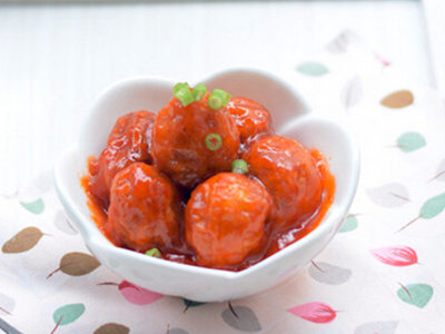 辅料:亨氏番茄酱2汤匙、食盐1.5克、白米醋1/2茶匙、鸡精2克、白糖3克、调和油1碗、玉米淀粉1/2茶匙