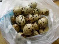 3.将热水中的鹌鹑蛋捞出放入冷水中。