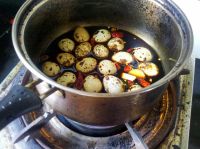 6.将鹌鹑蛋和香料一起放入准备好的料汁中煮。