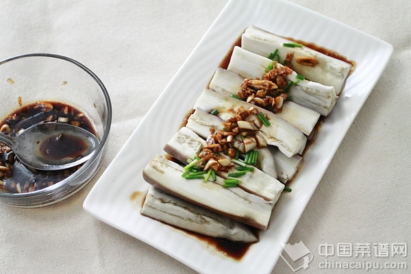 辅料:蒜5瓣 生抽1/2茶匙 醋5茶匙 香油1茶匙 盐1/2茶匙