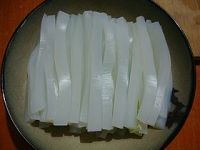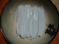 15.黄瓜洗净切成和豌豆粉等量的长度;