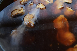 锅中加水,加入酱油、姜片、香葱、洗净的鸡胗,烹入料酒,炖煮30分钟后自然放凉;