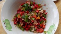 6 倒入特级酱油,用勺子拌均匀,腌制10分钟