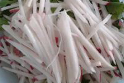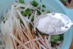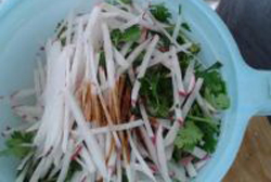 小萝卜洗净,皮也不用去,切成小的细丝即可