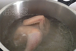 鸡肉清洗干净,冷水下锅煮熟(可以直接用煮鸡汤的肉)