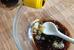 捣碎的葱蒜放一个小碗里,加盐,酱油醋等调成料汁