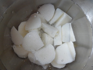 2 处理山药的时候可以带上橡胶手套,防止山药的粘液刺激手部的皮肤。