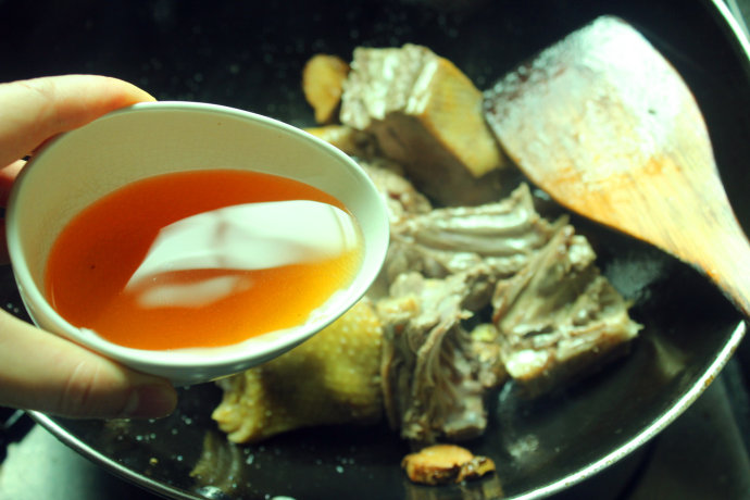 2、之前的博文中介绍过烹调闽菜必不可少的就是青红酒,不仅可以起到去腥的作用,而且使得汤汁味道更加香甜醇厚,如果没有青红酒可以用料酒,味道会稍显逊色一些