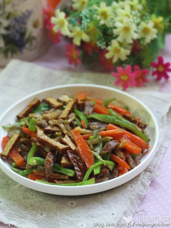 香干胡萝卜炒肉丝,虽说不是一道很精致的菜肴,但却没有繁琐的步骤,没有复杂的工艺,很适合厨房新手,看似简简单单平平淡淡的食物,却能让人吃出幸福的味道。