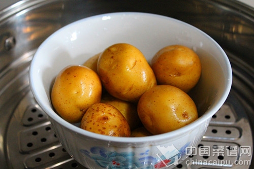 3.将小土豆放在笼屉上蒸20分钟,然后取出晾凉