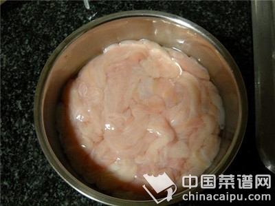 2.肠衣(盐渍肠衣)先用温水洗去表面的盐粒,再在温水中浸泡5小时以上。泡好的肠衣再套在水龙头上,冲洗一下肠衣的内壁,这样做的目的是为了给肠衣内壁起个润滑作用,灌肉的时候好灌。
