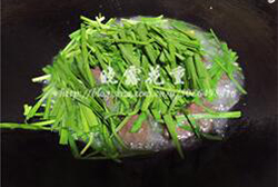中小火煮上五六分钟,加入胡椒粉,加入切长段的韭菜