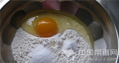 3.面粉加鸡蛋盐小苏打和适量清水和成面糊糊。
