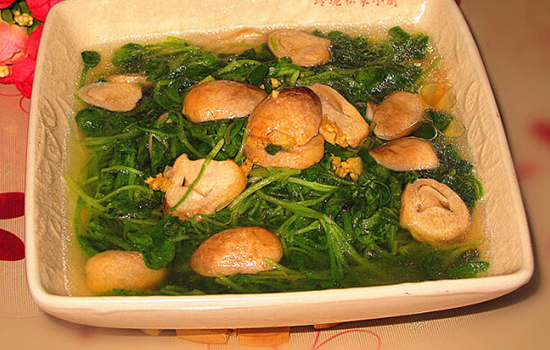 随着人们生活水平的提高,餐桌上每天都是大鱼大肉已不是什么新鲜的事情,荤素搭配身体才能维持较好的状态,吃什么有助减肥排毒清肠胃呢?上汤萝卜苗就是一个不错的选择,新鲜的萝卜苗配搭用鸡、干贝煲出的高汤,再放些草菇,滋味鲜美、超级好吃。