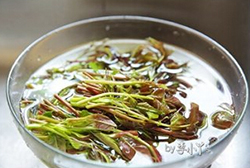 锅内烧开水下入香椿焯水后捞出,随既过凉开水后沥水备用