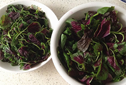 大碗拿出加入苋菜翻拌继续微波20秒即可