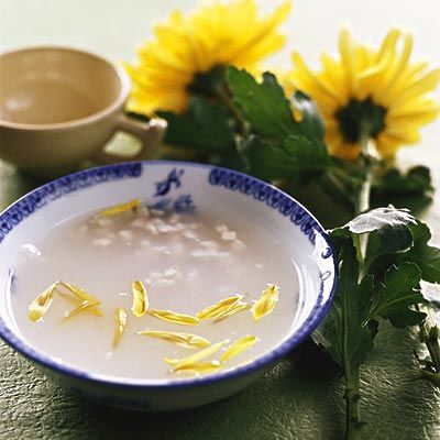 6、菊花也是可以治疗高血压的,就是取菊花植物嫩芽(15~20g)冲洗干净后,放砂锅内加适量清水及食盐少许,煮成汤,饮汤即可。