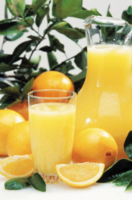 橙汁含丰富的维生素C。英国医学工作者对641名成年人的血液进行化验后发现,血液中维生素C含量越高的人,其动脉的血压越低。每天服用60毫克维生素C片,或者多吃些青椒、柠檬和其它酸味水果,也可起到同样的作用。