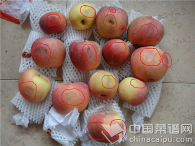 水果机械性损伤是最常见的。那些变软的部位,只是因为碰撞,细胞发生了破损,细胞质溢出。同时,由于细胞损伤,一些无色的多酚类物质被转化为深色的醌类物质,使得伤口呈现出特别颜色。纯属碰伤的烂苹果只会给人带来感官上的不悦。只要在碰撞后短时间内吃完,这类“坏果子”并不会影响健康。