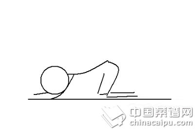 3.吸气,臀部抬起,滑手伸至前方,额头贴地,保持动作15秒。然后臀部坐下,回到坐姿。重复动作10-20次。