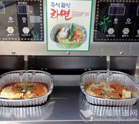 据报道,目前韩国很多便利店等场所出现了“一键式煮面机”,机器仅有小型净水器大小,顾客只需将一次性铝制容器放在料理盘上,将面饼和方便面调料放入盘中,再按下煮面机开关即可。机器会按照既定程序自动出水煮面,210秒后完成,操作者也可以根据个人喜好和面饼种类调节水量和煮面时间。