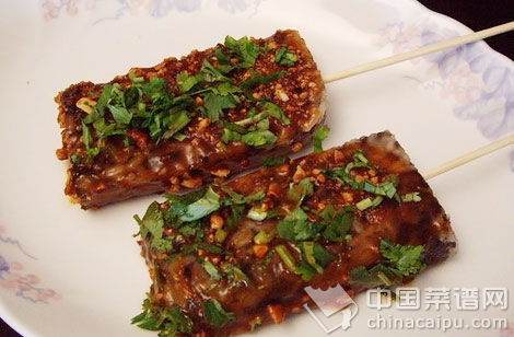 猪血糕;在台湾,猪血糕是用木签串起来的,像冰淇淋一样。街市上非常普遍,常由猪血与大米做成。