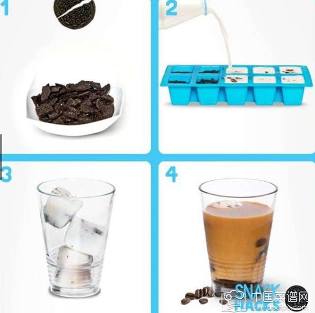 7. 将奥利奥饼干碎块放进冰格中,倒上牛奶冰冻起来。喝咖啡时放进去就可以了。