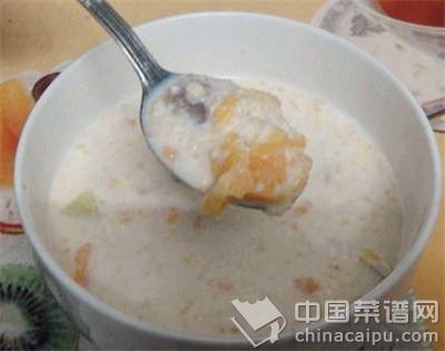 材料:红薯50g、燕麦片、低脂牛奶200c.c、砂糖1小匙(依个人口味添加)。