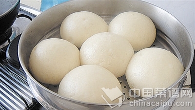7、蒸制时,要加满水、旺火。一般蒸15分钟即可出笼。欠火或过火均影响成品质量。