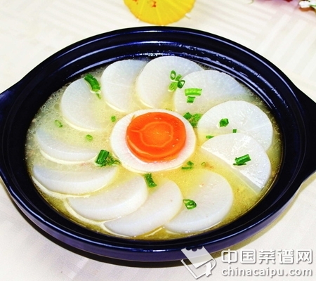 3、猪肺、白萝卜各1个,切块入锅,加杏仁9克,炖至烂熟,食肺饮汤,可治支气管炎。