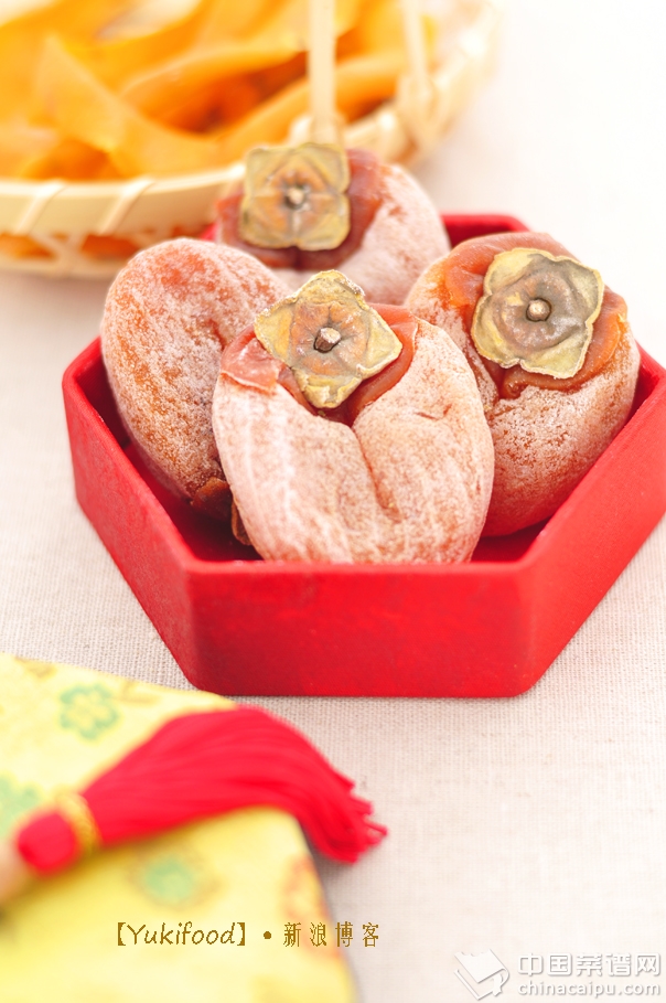 3.最后一个挂霜的步骤可以省略,味道也不错。柿子饼表面产生的白色粉霜含有甘露醇、葡萄糖、果糖、蔗糖等成分,味甘性凉,有清热、润燥、化痰的功效。