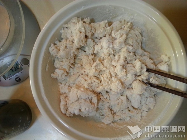 1.400克面粉加入280克左右的开水,需要滚烫的开水,边加入开水边用筷子搅拌,水要一点点加入,不要一次全部倒入面,团可以适当揉的软一些,因为在烙饼的时候还会蒸发一些