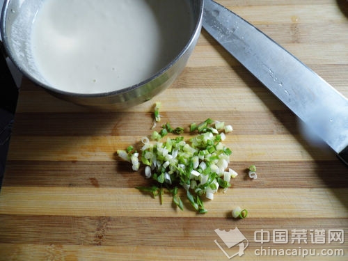 1.面粉加适量的清水拌成面糊,葱切成细末