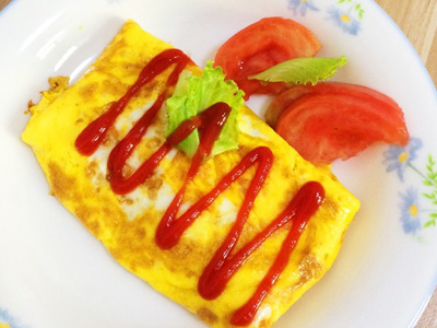 蛋包饭,顾名思义就是蛋里面包上米饭,吃起来软绵绵的感觉,鸡蛋的清香包裹着米饭的香味,两者的香味融合到一起,口感更好。