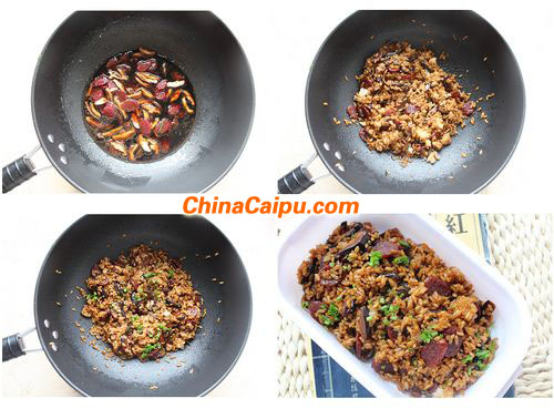 7 放入腊肠煸炒