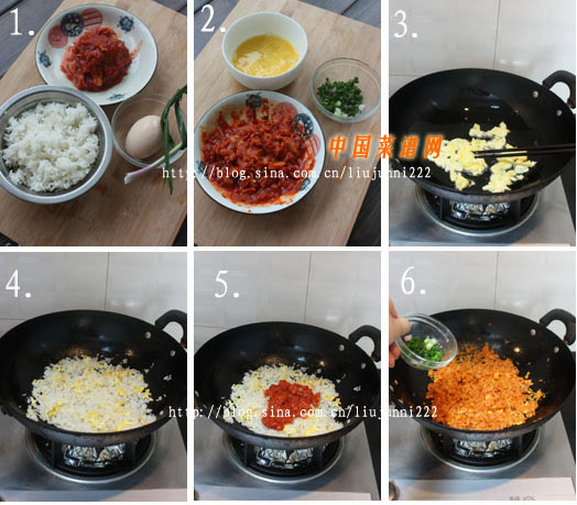 用料(一人份):剩米饭适量,韩国辣白菜适量(做法请看这里),鸡蛋一个,葱一根,干贝素(如没有可不放)、白糖、芝麻油少许;