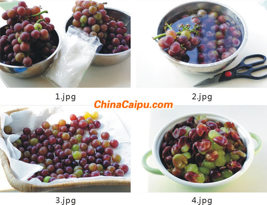 3、将洗净的葡萄晾干水份。