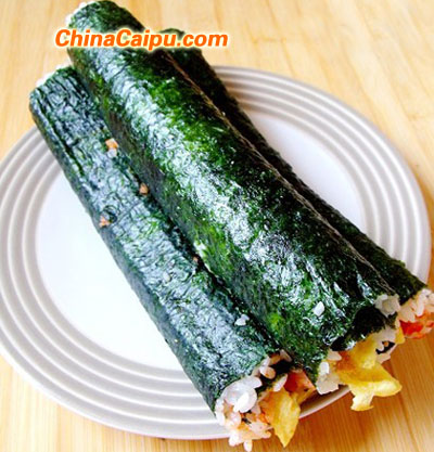 1,米饭,我没有用寿司专用米饭,用的是东北大米和圆糯米一比一混合,水放的少一点,多闷一会。