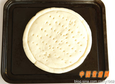 2、饼坯要扎上小孔,是为了防止烤的时候饼皮中间膨胀鼓起来,影响披萨的美观。
