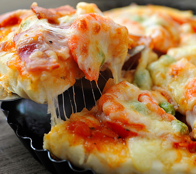 【披萨馅料】:意式披萨酱2大勺、新鲜明虾10只、培根两片、新鲜豌豆20g、彩椒一个、马苏里拉芝士100g