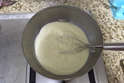 用少量热水融化吉利丁片,然后倒入奶酪糊中混合均匀