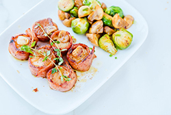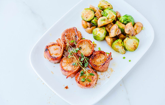 将培根与扇贝搭配在一起,组合出的味道却异常的和谐。这道菜无论是从味觉上,还是从视觉上来说,都会是一种享受。